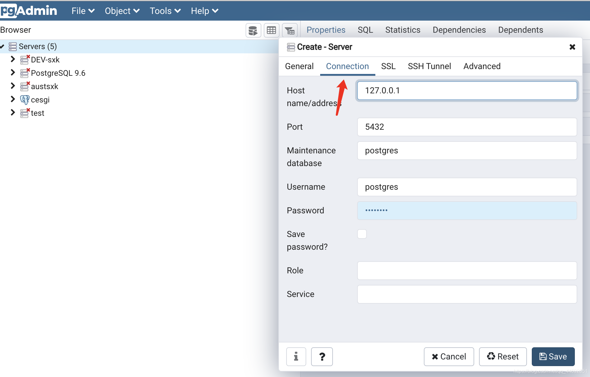 打开后输入数据库相关信息,其他信息可以默认,但是密码是当时安装时的密码: